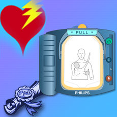 - Philips HeartStart Onsite Basic AED Training: Basic multimedia AED training, utilizing interactive animations created specifically for the AED selected. Students review assessment, CPR skills, and are instructed to operate an AED in a sudden cardiac arrest. The Virtual Philips HeartStart Onsite AED allows the students to perform each physical task through interactive simulations. The Virtual Philips HeartStart Onsite AED responds to the student's intervention exactly as the actual AED would respond both visually and with each AED's unique audio responses. Personal protection issues are addressed.